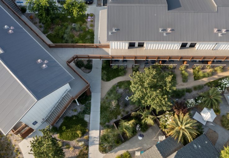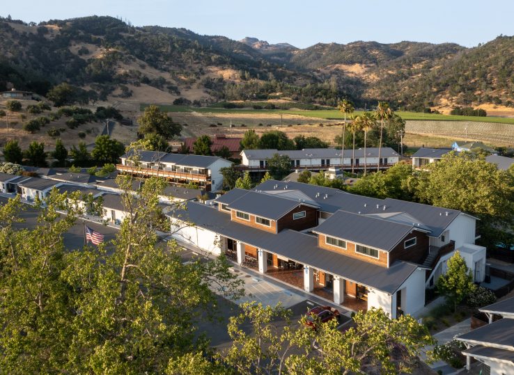 In 2017, we completed the first step in a multi-phased renovation and expansion of this boutique hotel property in downtown Calistoga, transforming a dilapidated motor lodge into a hip, eclectic resort inspired by the great American road trip. Using the initial phase of the renovation as a jumping off point, the second phase of the project added a new, two-story structure at the center of the motor lodge property, while the third and final phase adds new luxurious new accommodations and a sophisticated adult pool.