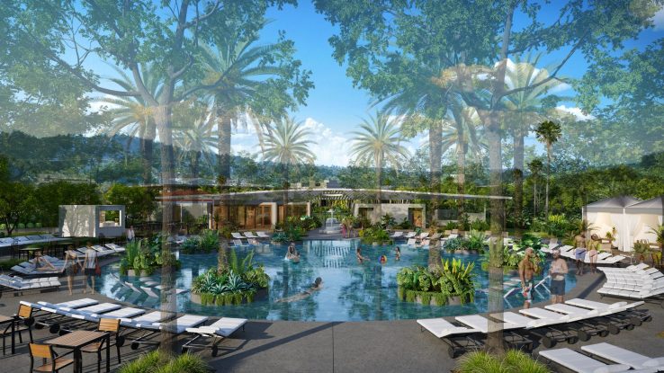Nine bungalows and eight-plexes housing 64 guestrooms, along with a cafe and bar, will encircle a dramatic new circular pool, providing a new, adult-oriented destination. Overlooked by a cafe and outdoor bar, and filled with a Mediterranean-inspired landscape of citrus and lavender, the design of the pool area is inspired by traditional Spanish conservatories.