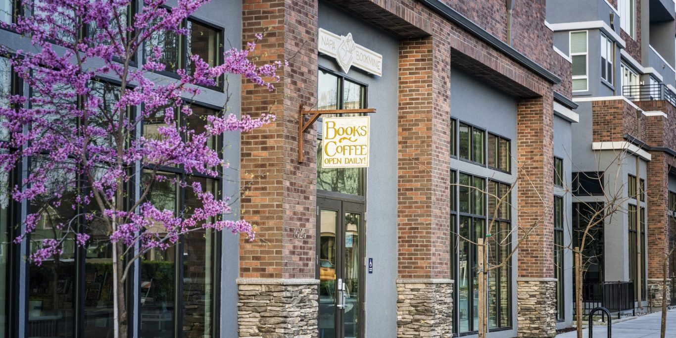 Napa Bookmine occupies one of two street-front commercial spaces within a new, much-anticipated mixed-use building on 2nd Street in the heart of downtown Napa, the result of a long, dedicated effort by the owners, who spent five years working to bring the project to life.