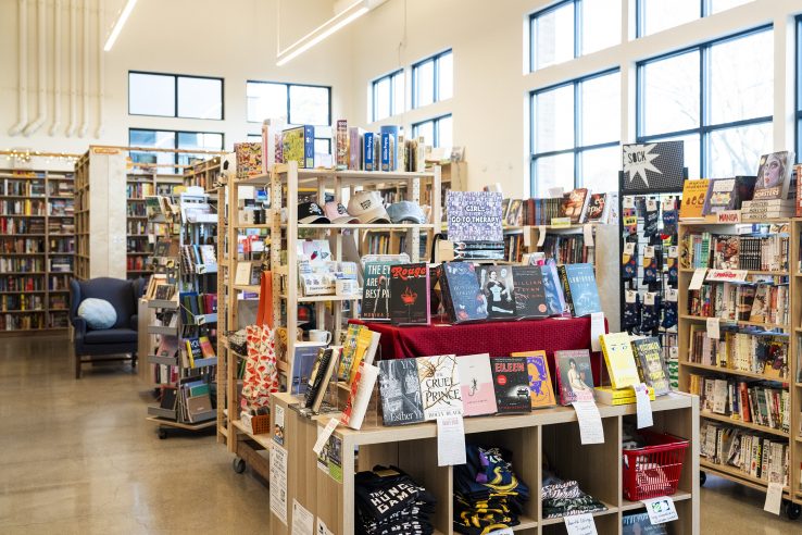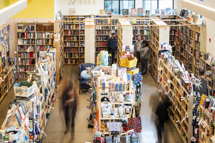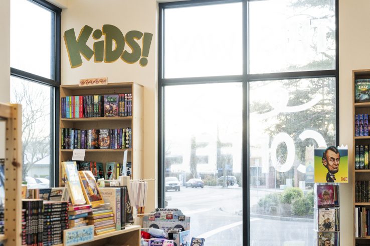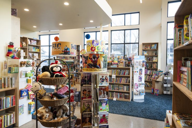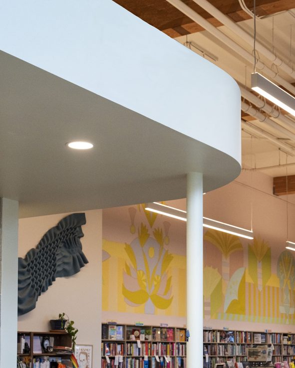Busy and filled with books, the merchandise in any active bookstore plays the starring role. However, the selection of interior finishes and details was an exercise in intention. From the cafe counter’s Fireclay tile to the local artwork and hand-painted mural, each carefully-selected detail carries a sense of meaning.