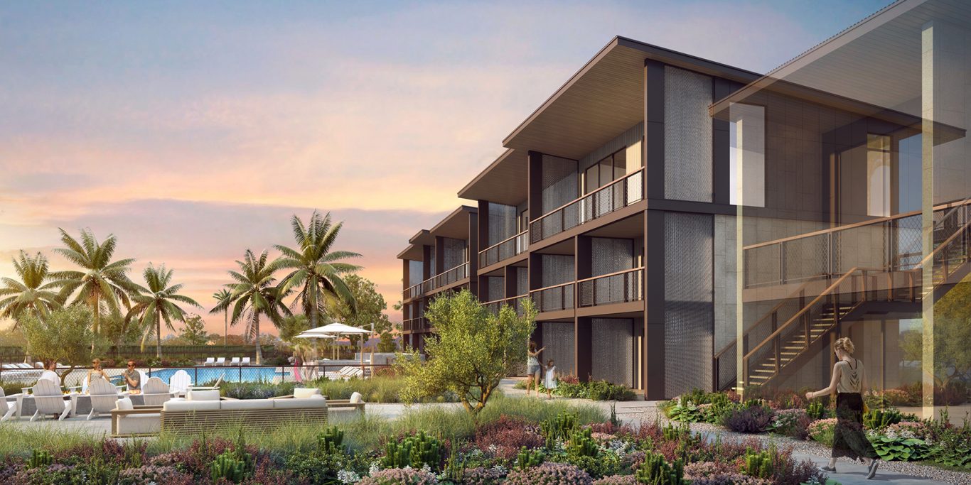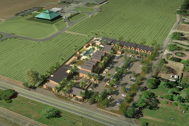 Designed as a collection of structures surrounding a central arrival area and integrated into the surrounding vineyards, the hotel is designed to capture views of the surrounding vineyards at every opportunity. The resort will feature 50 guestrooms and suites,  a pool, fitness studio and a recovery garden designed by Napa-based Lydia Mondavi, as well as a restaurant, bar, café, outdoor living room, and a bike barn.